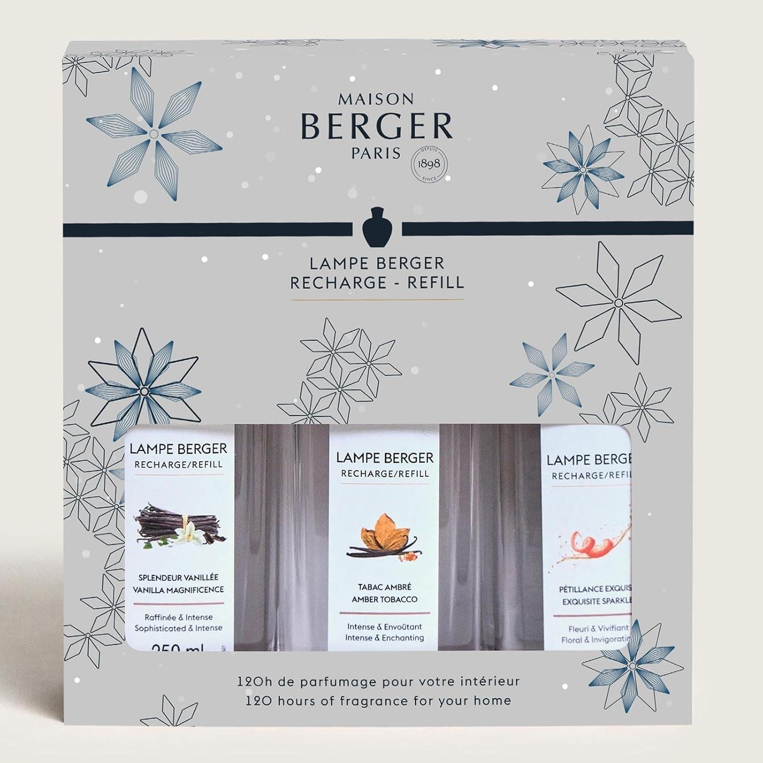 This set includes 3 bottles of Maison Berger lamp refill fragrance 250 ml (8.5 oz)