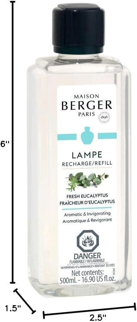 Maison Berger – Bleu Seduction – Lampe Berger Fragrance Refill Oil for Home Diffusers – Luxury Air Freshener with Grapefruit, Marine Notes & Sandalwood – 16.9 Fl Oz (500ml)(Fresh Eucalyptus)
