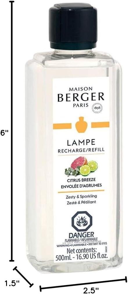 Maison Berger Citrus Breeze Refill Oil for Lampe Berger Diffusers - Luxury Air Freshener with Fresh Cut Grass, Lemon Zest, Tea Leaves & Sandalwood - 16.9 Fl Oz (500ml)