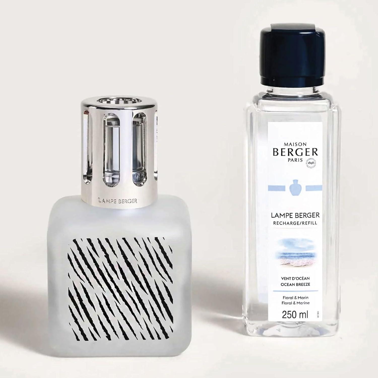 MAISON BERGER Lampe Berger Giftset Ice Cube - Home Fragrance Diffuser - Perfuming - 5.5 x 3 x 3 inches - Made in France - Includes Fragrance Ocean Breeze 8.45 Fluid Onces - 250 milliliters (Zebra)(Zebra)