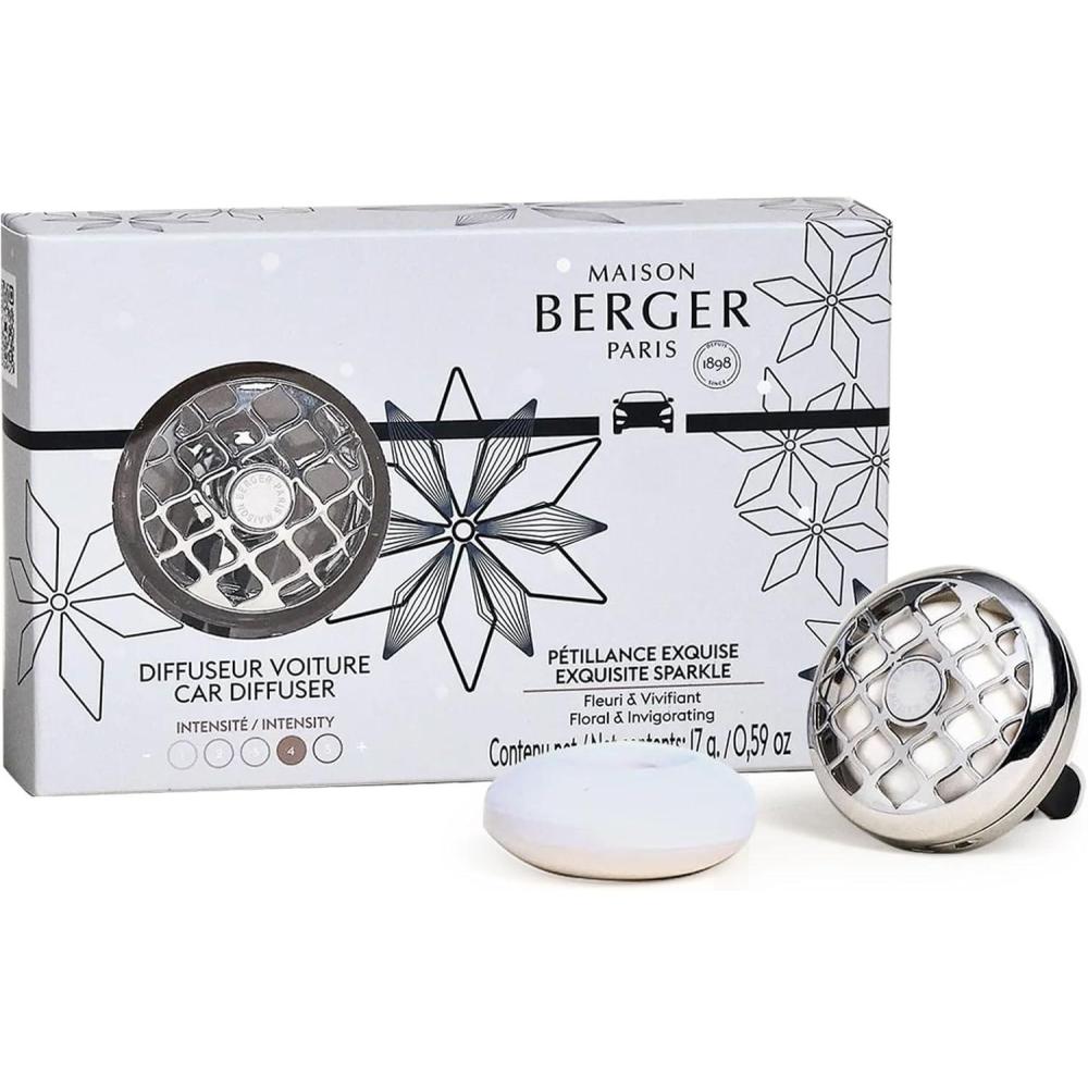 MAISON BERGER - Refillable Car Air Freshener Vent Clip Diffuser Set - 3.1 x 2 x 0.8 inches - Made in France (Vanilla Magnificence)(Rosalie - Exquisite Sparkle)