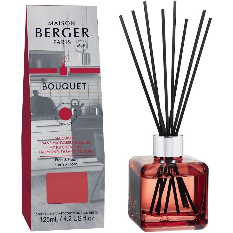 Reed Diffuser - Cube - Clear - Scented Bouquet with Reed Sticks - Prefilled with Lampe Berger Fragrance - 125 Milliliters - 4.2 Fluid Ounces (Citronella)(Anti-Odor Kitchen - Fresh & Floral)